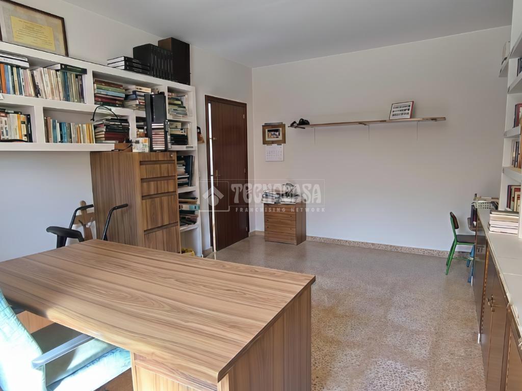 - PLANTA INFERIOR: habitación DOBLE. AMPLIO despacho / estudio, con estanterías de obra. Oficina polivalente. Cocina CAMPERA con CHIMENEA y alacena de obra. Aseo. Patio CUBIERTO, con tragaluces. Cuarto de calderas. Patio EXTERIOR con garaje PORCHEADO y capacidad para 3 vehículos. El garaje cuenta con un PUNTO DE CARGA para coches eléctricos y puerta AUTOMÁTICA. Trastero AMPLIO, con ventana al patio exterior.