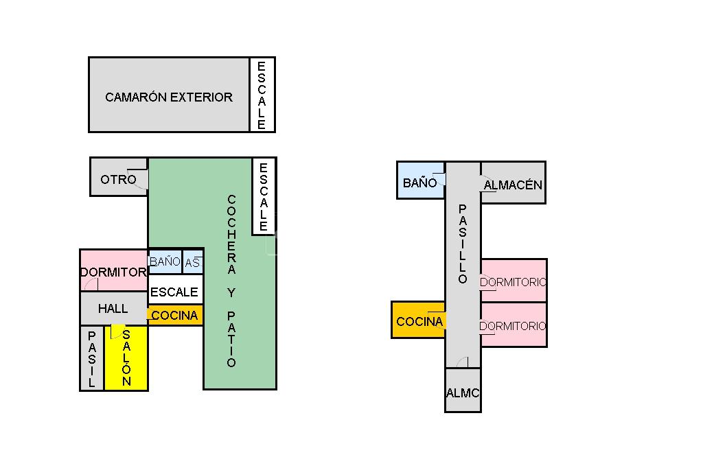 - PLANTA BAJA: hall de entrada que se divide salita EXTERIOR, cocina EQUIPADA, habitación con BAÑO en SUITE, una GRAN cochera con acceso directo al PATIO en el que se encuentra un ASEO, cuarto de calderas y en la planta alta un CAMARÓN.